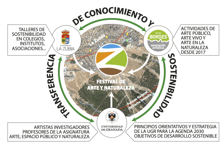El Festival de Arte y Naturaleza de La Zubia es un proyecto de Transferencia del Conocimiento financiado por el Vicerrectorado de Investigación de la Universidad de Granada, el Ayuntamiento de La Zubia y la Asociación Artística En los Bordes.