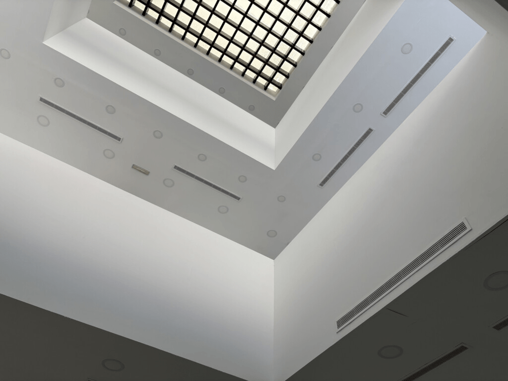 El edificio cuenta con cuatro plantas articuladas en torno a un atrio, con balconadas en los pisos primero y segundo, que actúa de eje a lo largo de tres plantas, y que permite la interacción entre diferentes espacios.